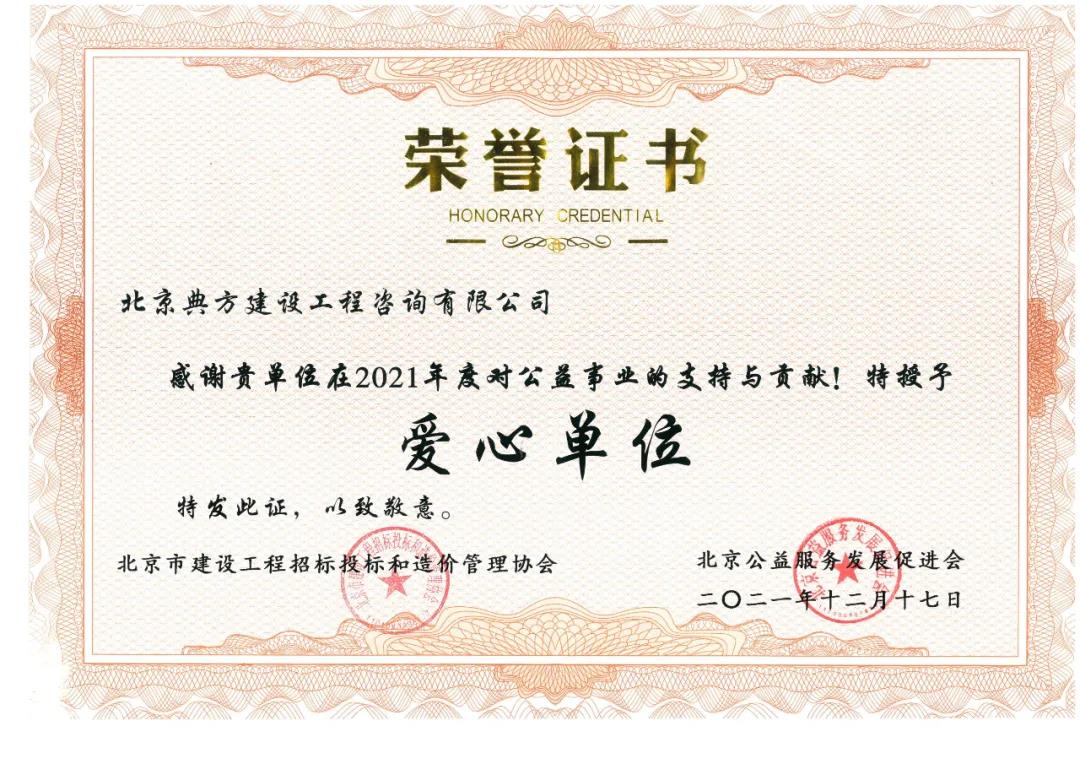 本次榮獲“愛心單位”證書,是由北京市建設工程招標投標和造價管理協(xié)會和北京公益服務發(fā)展促進會共同頒發(fā)的,2021年“鄉(xiāng)村教育振興公益幫扶計劃”公益捐款活動。活動目的是為貫徹《中共中央國務院辦公廳關于推進社會公益事業(yè)建設領域政府信息公開的意見》精神,充分發(fā)揮行業(yè)引領與帶動作用,加強愛心單位隊伍建設。